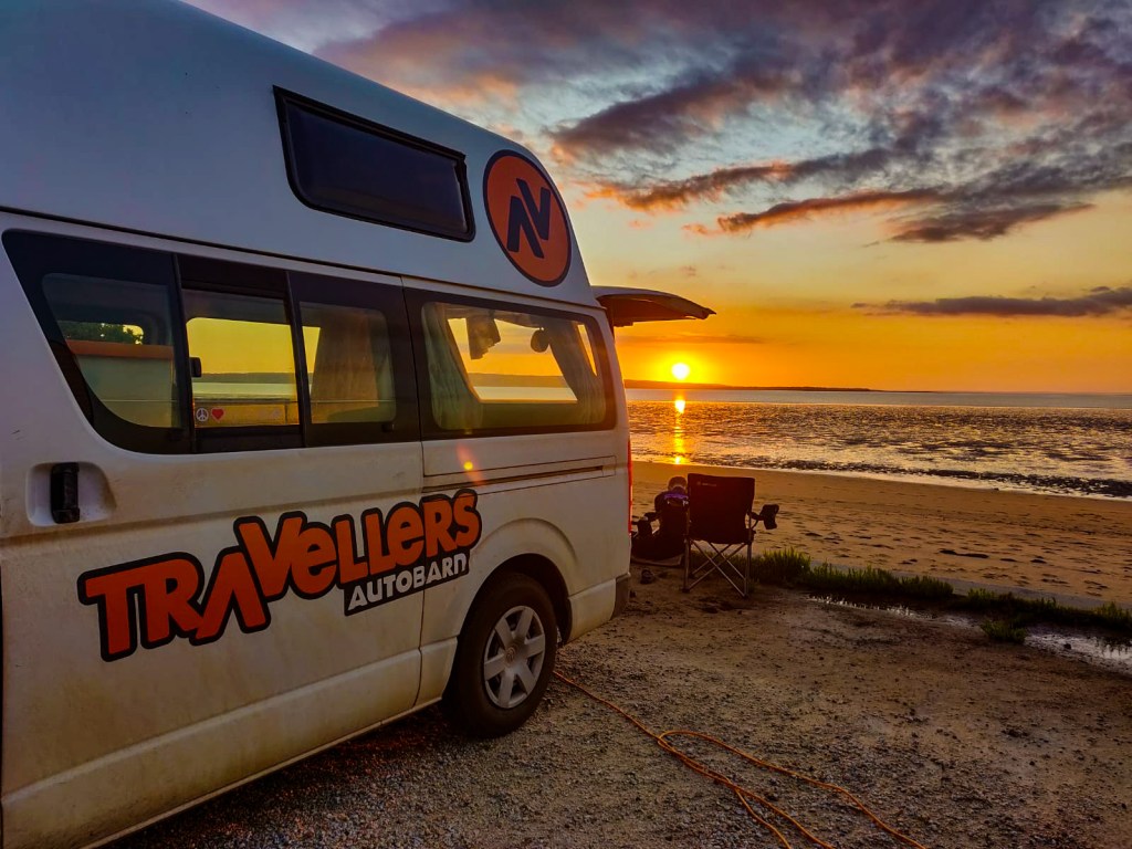 Our original plan was to get to Phillip Island by the evening but we had such a good day we didn’t want to rush. We found this lovely little spot on WikiCamps called Lang Lang Caravan Park. He even had a powered site left right next to the water front it was stunning. Watching the sunset over the sea with a beer in hand right next to the van, this is what dreams are made. Bargain at $35 pn