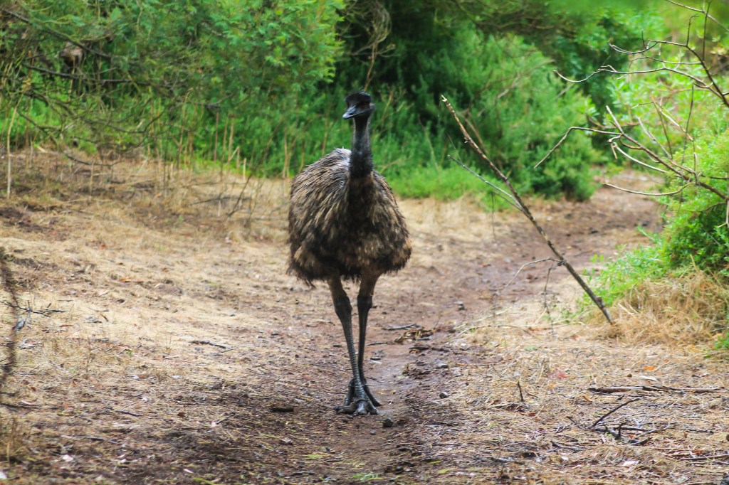 Emu following our tracks